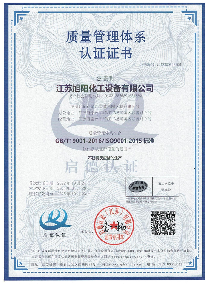 江蘇旭陽化工設(shè)備有限公司專業(yè)從事各類化工、環(huán)保、制藥、發(fā)酵、食品、新材料、鋰業(yè)等項目設(shè)計、制造及壓力容器的生產(chǎn)制造,是一家集研發(fā)、生產(chǎn)和進出口貿(mào)易于一體的高科技企業(yè)。